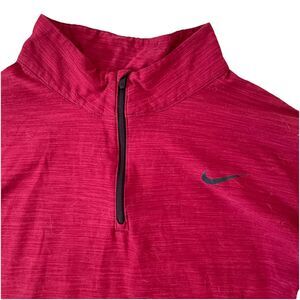 Nike Dri-FIT 1/4 Zip Long Sleeve Shirt Red Mens M Running Training Top Gym Walk