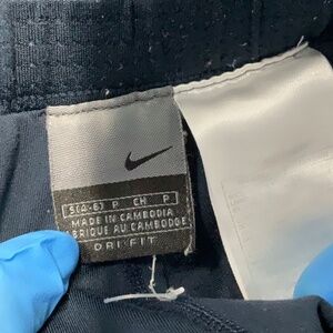 Hit the court or the trails in this essential Nike Dri-FIT athletic skirt/skort! This classic piece is a versatile black or navy blue (check under bright light to confirm color) and features Nike’s high-performance, moisture-wicking Dri-FIT technology to keep you cool and dry during any workout. The skirt has an A-line or slight flare cut for movement, and the built-in undershorts/liner make it comfortable for running, tennis, golf, or casual wear. The material is lightweight and breathable. Perfect for the athlete who values both style and performance!