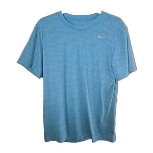 Nike Dri-FIT Blue Striped Swoosh Logo Short Sleeve Active Top Men's Size Medium