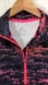 Nike Dri-FIT half-zip pullover, a stylish and functional athletic top. This long-sleeve shirt features a unique abstract print in shades of black, purple, and coral, accented by a vibrant pink zipper. The design incorporates Nike's signature Dri-FIT technology, ensuring moisture-wicking comfort during workouts. Perfect for running, gym sessions, or casual athleisure wear, this top combines performance with eye-catching style. Its half-zip design allows for adjustable ventilation, making it suitable for layering or wearing on its own.