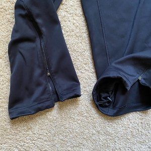 Straight-leg, open hem design, w/ zippers + bungee at opening
