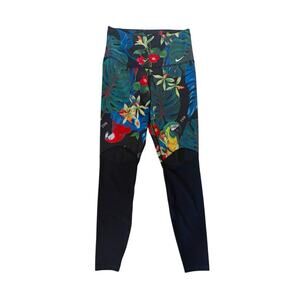 Nike Dri-FIT Leggings Black Tropical Parrot High-Rise Mesh Athletic Medium