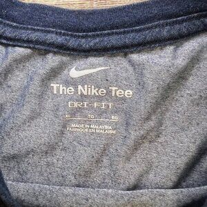 Great preowned condition Size X Large. Color: Navy Blue Heather; Dri-FIT moisture-wicking technology; Short sleeve crew neck; gym shirt, running tee, athletic wear, activewear, fitness clothing, exercise shirt. No stains holes or rips.