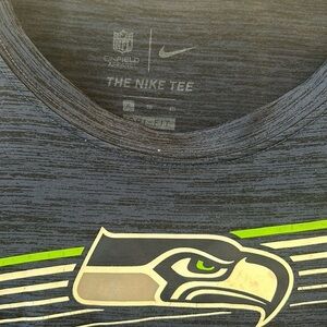 Comfortable Nike Dri-FIT shirt. Features Seahawks logo. Ideal for fans.