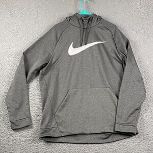 Nike Dri-FIT Pullover Hoodie Men's XL Gray with Large White Swoosh Logo