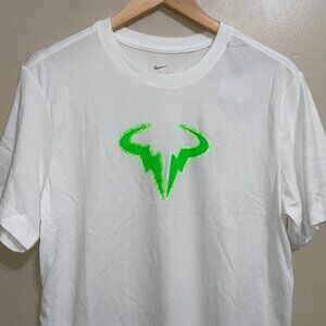 Nike Dri-FIT Rafa Nadal Tennis T-Shirt White Green DZ2639-100 Men's NEW