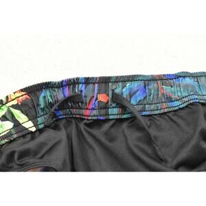 Step up your activewear game with these stylish Nike Dri-FIT running shorts in a women's size large. These shorts feature a vibrant and bold tropical pattern with parrots and florals set against a classic black background, finished with a bright orange trim for a pop of color. Engineered with Nike's signature Dri-FIT technology, the 100% recycled polyester fabric wicks away moisture to keep you cool and dry during workouts or casual outings. The shorts are designed with an athletic fit, featuring a comfortable elastic waistband with an adjustable internal drawstring for a personalized, secure fit. A built-in brief liner provides extra comfort and coverage. The iconic curved hem allows for a natural range of motion. With a 3-inch inseam, these shorts are perfect for running, gym sessions, or everyday wear.