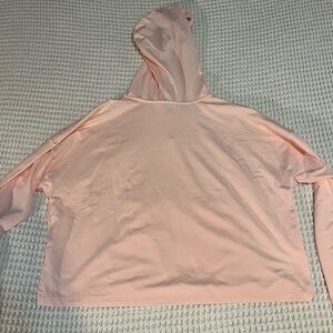 Comfortable and lightweight Nike Dri-Fit hoodie. It has a slight boxy crop fit. The material is pretty thin.