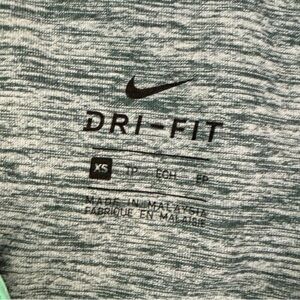 moisture-wicking top, lightweight half-zip pullover, Nike running top, long sleeve workout shirt, mint green athletic shirt, thumbhole sleeve activewear, XS Nike training gear, reflective detail performance top