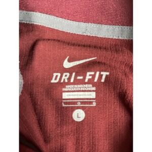 This Nike Dri-Fit 1/4 Zip Jacket is a stylish and functional windbreaker for men in size L. Made of polyester material, the jacket features a solid black color with a Nike logo accent. It has a mid-length design with a zip closure and is lightweight, making it ideal for outdoor activities like golf.