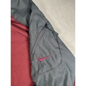 The jacket includes a 1/4 zip for ease of wear, as well as stretch fabric and moisture-wicking technology for comfort and performance. With its pullover style and convenient arm zip pocket, this Nike Dri-Fit jacket offers both style and practicality.