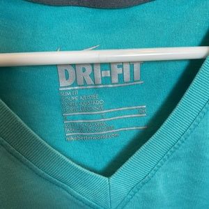 Workout shirt with vneck. Lightly used, see some wrinkling at Nike logo