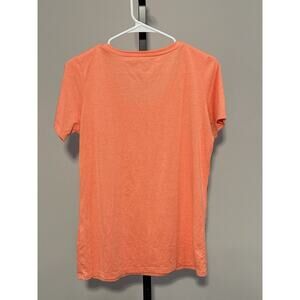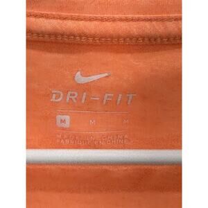 Nike Dri-Fit Active Wear Top for women in size Medium. The top is in a vibrant Orange color and features an Athletic fit. Made of Polyester material, it is designed for sports or active wear. The Nike Dri-Fit technology helps keep you dry and comfortable during workouts.