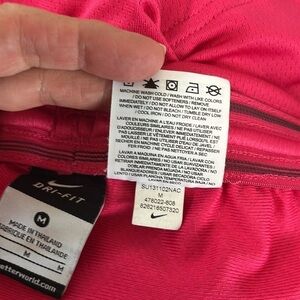 Nike Dri-Fit Activewear Shorts Women's Fitted M Pink Orange Teal Pull On, elastic waist pull on style, stretch, inside drawstring, 100 poly, very good condition, activewear, workout, yoga, running, athleisure