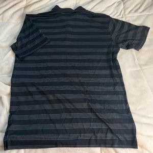 This Nike Golf polo shirt is a stylish and high-performance option for any golfer. The black and striped design is perfect for those who prefer a classic look on the course. The shirt is made with Nike's Dri-Fit fabric, which helps to keep you cool and dry during your game. The shirt is available in a men's size large and has a regular fit. It features a two-button placket, short sleeves, and the Nike logo on the chest. This polo shirt is perfect for golfers of any skill level and is sure to help you stay comfortable and stylish on the course.