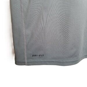 This Nike Dri-Fit performance tee delivers functionality and comfort with its moisture-wicking fabric and strategic mesh ventilation. The gray and black colorblock design keeps things sleek while the mesh side panels enhance airflow during high-intensity training. Whether you're hitting the gym, going for a run, or styling it casually with joggers and sneakers, this versatile athletic shirt performs. The raglan sleeve construction allows full range of motion, making it ideal for everything from weight training to outdoor activities.