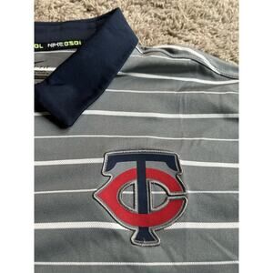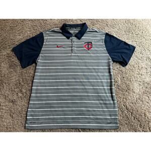 Nike DriFit BSBL XL Men’s POLO SHIRT Minnesota Twins Blue Gray Stripe Golf J25