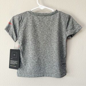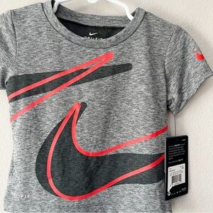 Brand new with tags Nike Dri-Fit baby boys short sleeve tee shirt in gray with red and black logo. Size 12 month. NWT- writing on interior neckline that will likely wash out (see photos).