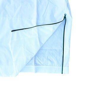 Elevate your style with this Nike Dri-Fit windbreaker tailored for the modern golfer. This white, 2XL windbreaker features short sleeves and a smart, zip collar with contrasting trim for a sharp look. Engineered with polyester fabric, it boasts Dri-Fit technology to ensure breathability, moisture-wicking comfort, and quick-drying performance. Ideal for both activewear and casual outings, this windbreaker is machine washable for easy care. Gently pre-owned, it promises to deliver both style and functionality.