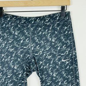 Nike Dri-Fit Black Grey Pattern Cropped Running Leggings. Back zippered key pocket. Women Medium.