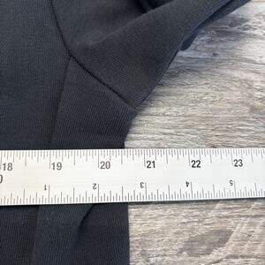 cotton/polyester/spandex, crew neck, classic long sleeves, spell out graphic print, pullover style, plain minimalist boxy fit, mens size tagged as Medium, measures 20.5" by 27.5" fit closer to Large