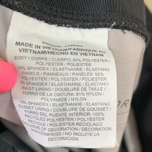 Size S. 85% Polyester 15% Spandex. Inseam 23 1/4 inches. Waist 27 inches. Rise 10 3/4 inches. Drawstring on the inner waistband. Side pocket on the leg for cellphone. Great condition!