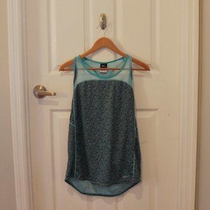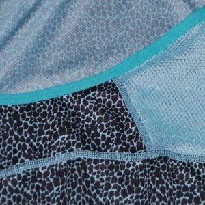 Blue and black leopard print tank made of Nike’s Dri-Fit material with a mesh top. Very comfortable and perfect for working out!