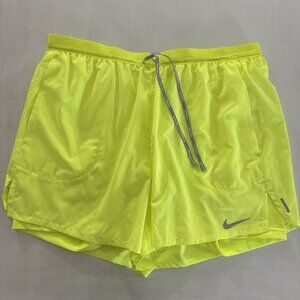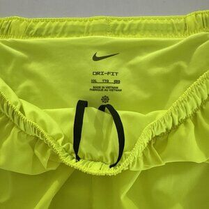Nike Dri-Fit Challenger Shorts Mens 2XL Neon Volt Yellow Brief Lined 5” Inseam