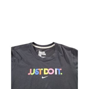 Nike Dri-Fit Cotton Tshirt Women Sz L Just Do It Graphic Print Black Casual Spor