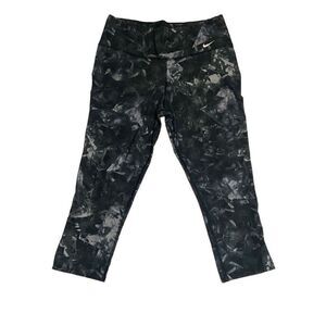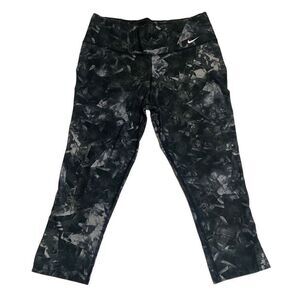 Nike Dri-Fit Crop Leggings Black Gray Graphic Leggings Ladies Size Medium EUC