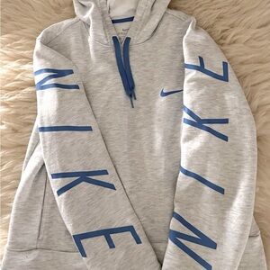 Nike Dri-Fit Cropped Light Gray Logo Hoodie Oversized Sweatshirt