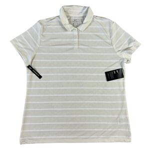 Nike Dri-Fit Dry Standard Fit Women Tan Striped Short Sleeve Polo Shirt Size XL