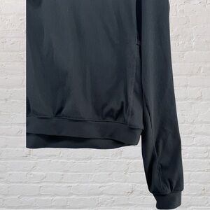 The top has long sleeves with thumbholes to extend coverage and keep the sleeves in place during movement. The half-zip design allows for adjustable airflow and coverage.