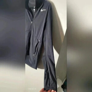 Nike Dri-Fit Full Zip Black Lined Windbreaker with Hand Covering Women’s Size Large