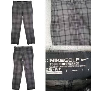 Nike Dri-Fit Golf Pants Men’s Size 34x32 Gray Plaid Flat Front Chino Performance