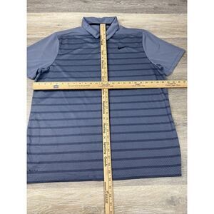 Elevate your golf game with this Nike Dri-Fit Tour Grey Stripe Polo Shirt. Designed for men in size XL, this polo is perfect for golf enthusiasts who demand both style and performance. The shirt features a striped pattern, short sleeves, and a button closure with a Nike logo accent.