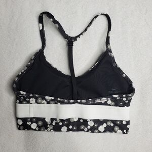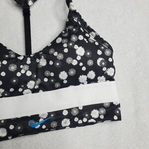 Nike Dri-Fit Indy Black & White Floral Print Swoosh Logo Racerback Sports Bra