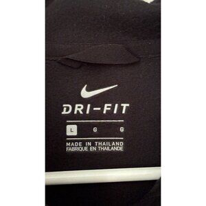 Crafted for comfort and performance, the Nike Dri-Fit Jacket is an essential for any active wardrobe. The black track jacket is designed with a polyester outer shell that provides durability and a snug fit in a size large, suitable for regular body types. Its activewear intent makes it an ideal companion for workouts, runs, or casual outings that call for a blend of style and utility.