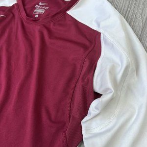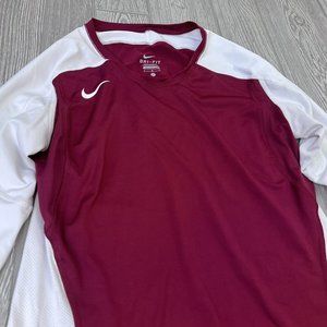 Nike Dri-Fit Long Sleeve Shirt Sport Active Stretch Crimson Red Maroon White L