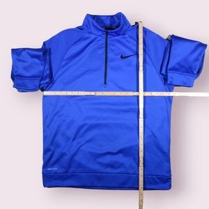 Nike Dri-Fit Men’s L Blue 1/4 Zip Fleece Pullover Sweatshirt Black Swoosh