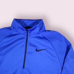 Nike Dri-Fit Men’s L Blue 1/4 Zip Fleece Pullover Sweatshirt Black Swoosh
