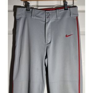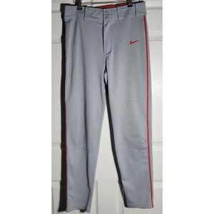 For sale is this pair of Nike Dri-Fit Men's S Grey Red Piped Belted Loose Fit Baseball Pants Pre-Owned. Faint Turf Marks in some spots. Please view all photos as they are part of the description and show condition. Comes from a Smoke-Free/Pet-Free Shop.