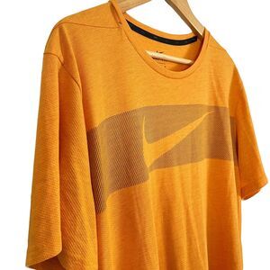 Nike Dri-Fit Mens Short Sleeve Perforated Workout Tee Shirt Orange Swoosh sz XL