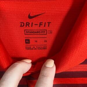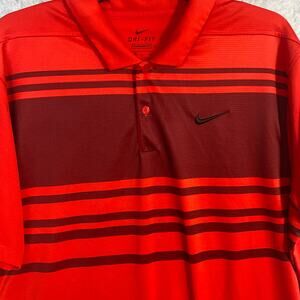 Nike Dri-Fit Mens Standard Fit Size XL Red With Stripes Golf Shirt‎
