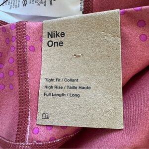 Nike Dri-Fit One Leggings Pink High Rise Tight Fit Full Length Training Girls L