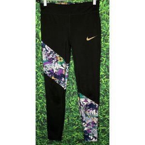 Nike Dri-Fit One Tight Fit Girls Large Floral Black Training Leggings DC7090-010. Pre-owned in good used condition. Measurements are approximate waist 24” (will stretch to 31”); hips 26”; rise 8”; inseam 25”; length 33”.