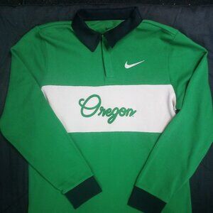 Nike Dri-Fit Oregon Ducks Script Spell Out Long Sleeve Polo Shirt - Size Medium, Measures p2p=21" Length=30" Sleeve Length=25" - Excellent Condition, No Flaws