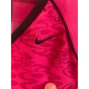 Nike Dri-Fit Pink and Blank Racerback Workout Tank size Medium. This Nike Dri-Fit tank is perfect for any active woman looking for a comfortable and breathable piece of activewear. The tank is made with a blended fabric of polyester and spandex, making it lightweight and stretchy. It features a V-neckline and racerback with a pullover closure for ease of wear.