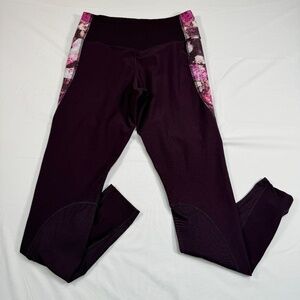 Nike Dri-Fit Power Legend Floral Leggings Womens Size M Port Wine Mesh