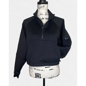 Nike Dri-Fit Prima Cropped Quarter Zip Pullover Size SM Black LS Thumb Holes Gym